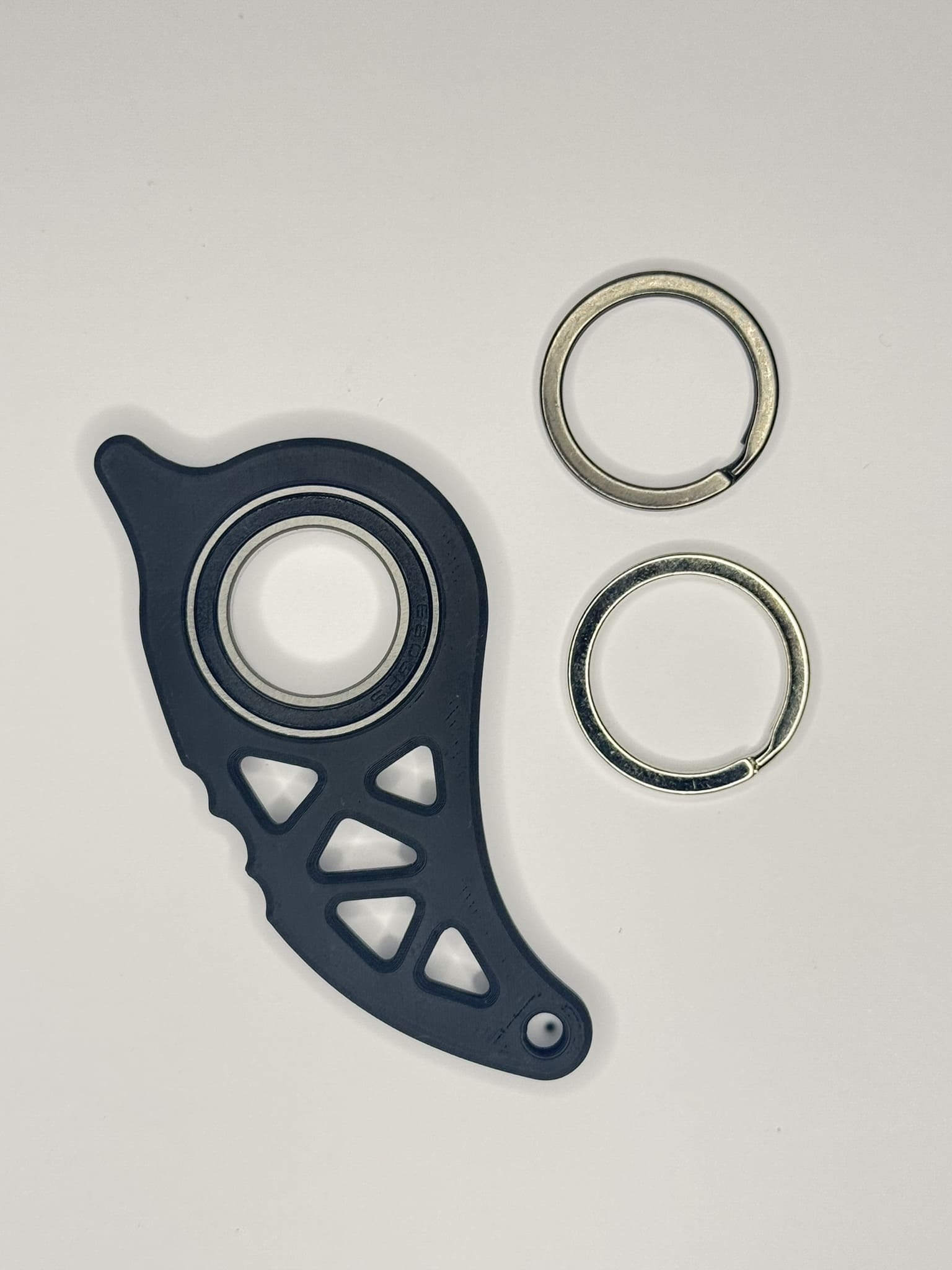 KeyLoop is a creative keychain with a built-in ball bearing that uniquely combines function and design. Originally inspired by the ergonomic handle of a karambit knife, KeyLoop has evolved and is now available in many variations and abstract shapes.