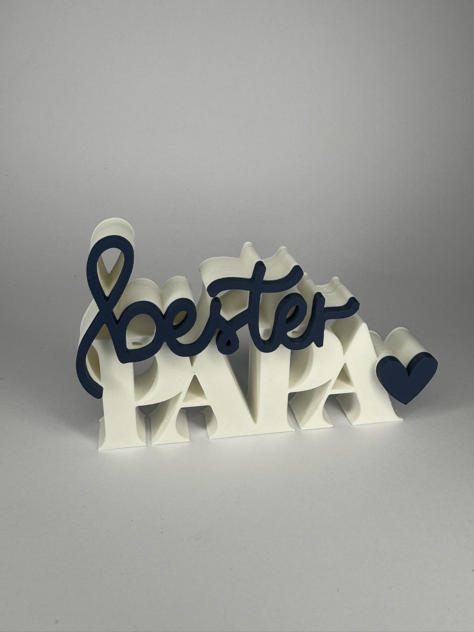Du suchst ein besonderes Geschenk für Deinen Papa? Unser 3D-gedrucktes WordPop mit dem Schritzug "bester PAPA" sagt mehr als tausend Worte. Modern, liebevoll und persönlich - ein echter Hingucker für jeden Super-Dad!