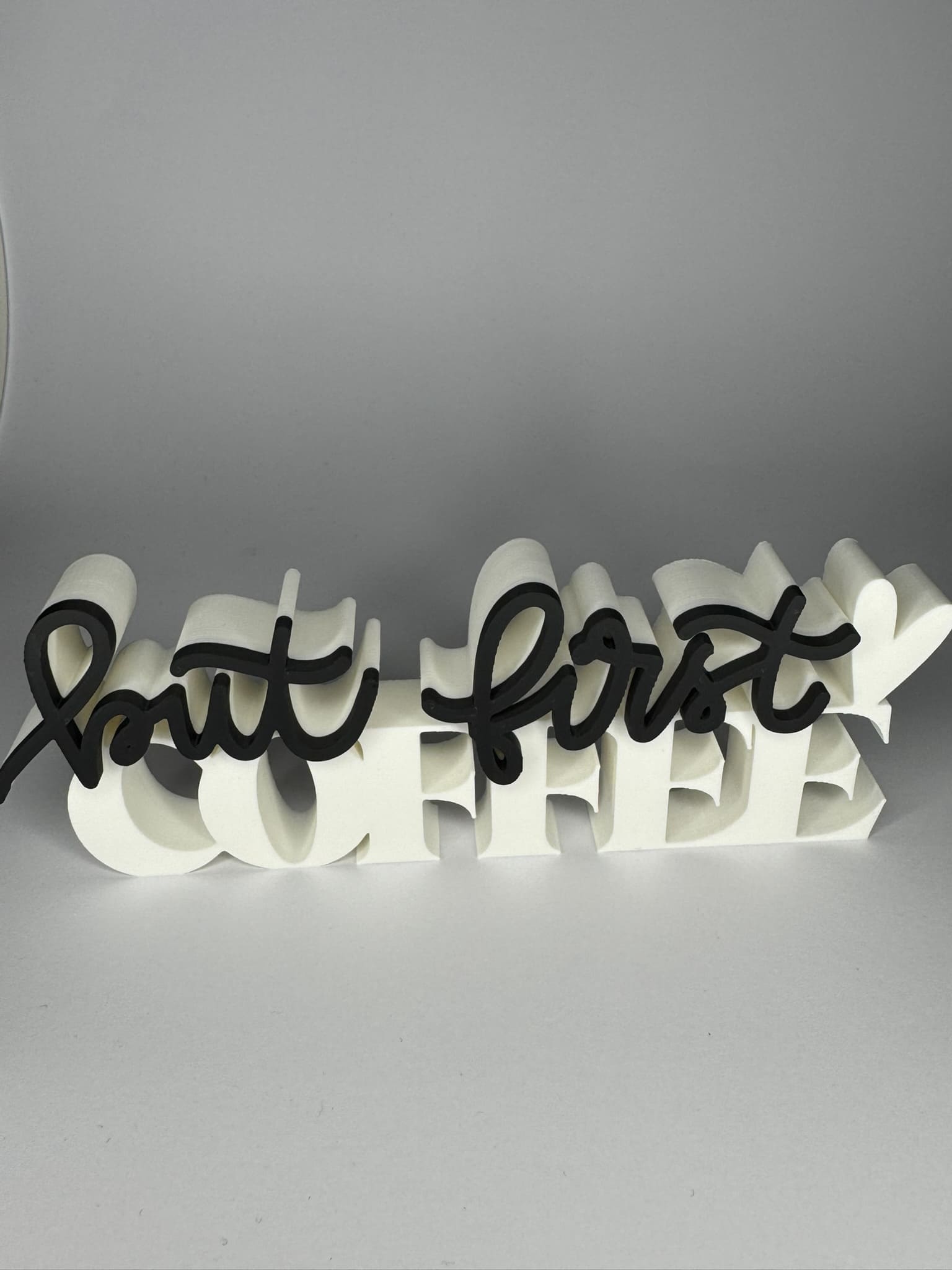 Kein Tag beginnt ohne die erste Tasse. Unser 3D-gedrucktes WordPop "but first COFFEE" ist das perfekte Statement für alle, die Kaffe nicht nur trinken, sondern zelebrieren. Stylisch, witzig und absolut unverzichtbar für jede Kaffeesituation.