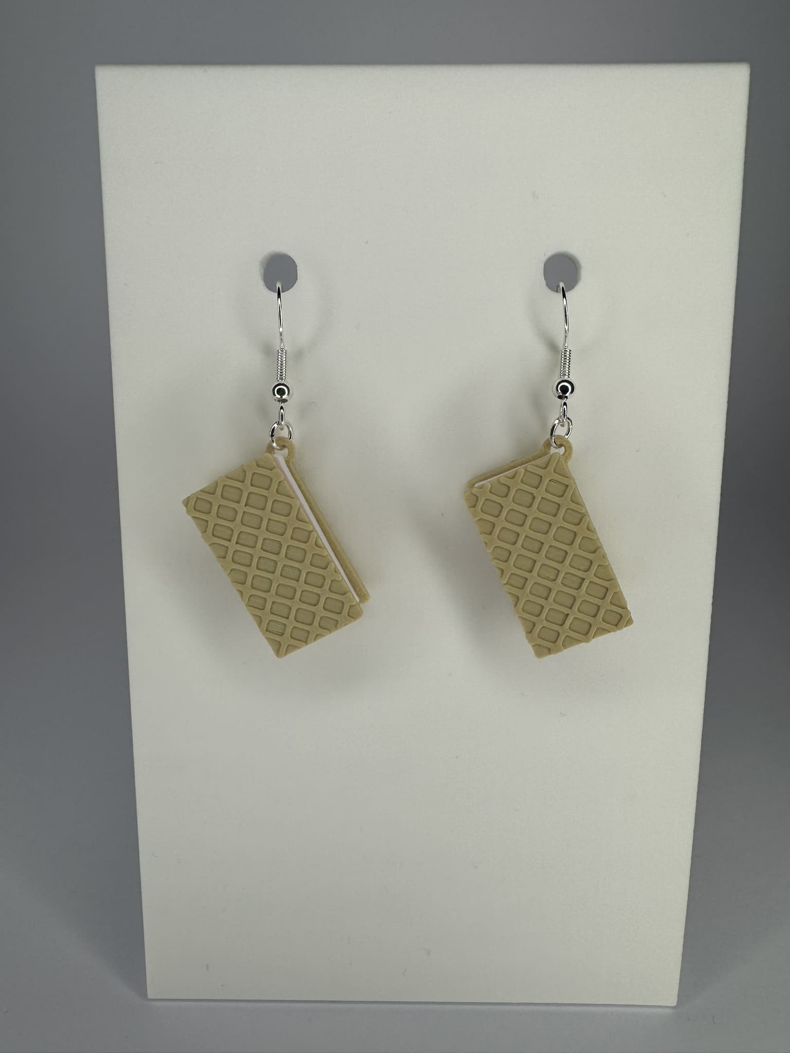 Die detailreiche Waffelstruktur wirkt wie frisch gebacken, und die aufeinandergeschichteten Eissorten sorgen für einen fröhlich-pastelligen Farbtupfer. Dank 3D-Druck sehen die Ohrringe fast zum Anbeißen echt aus - aber bitte nur anschauen, nicht naschen!