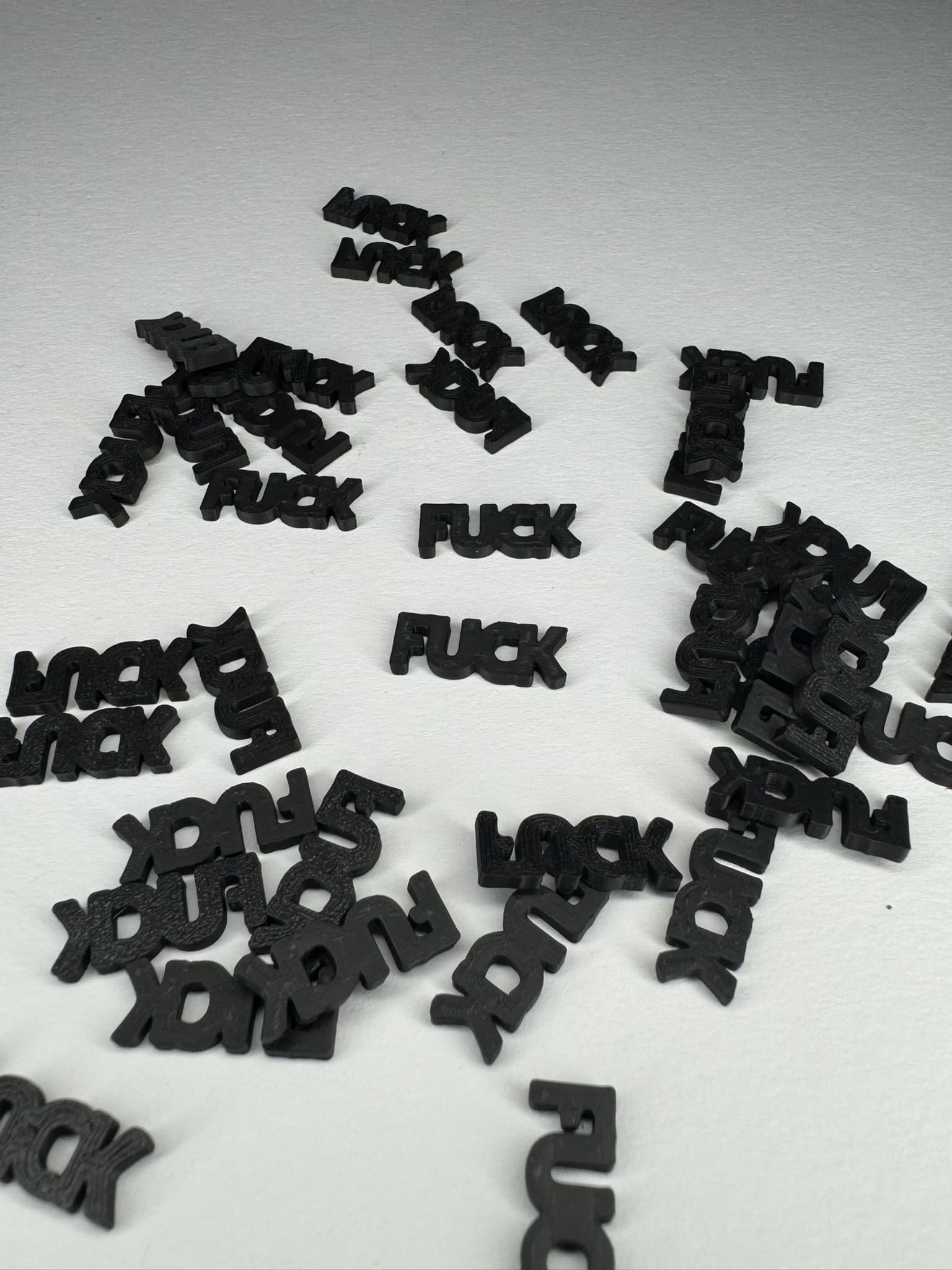 Ob als Konfetti mit Haltung, kreative Deko oder stilles Statement - unsere "Fuck"-Minis sind kleine, aber wirkungsvolle Alltagsbegleiter für Menschen mit Humor. 3D-gedruckt aus hochwertigem, umweltfreundlichem PLA und in verschiedenen Farben erhältlich, bringen sie genau die richtige Dosis Sarkasmus, Charme und Augenzwinkern mit.