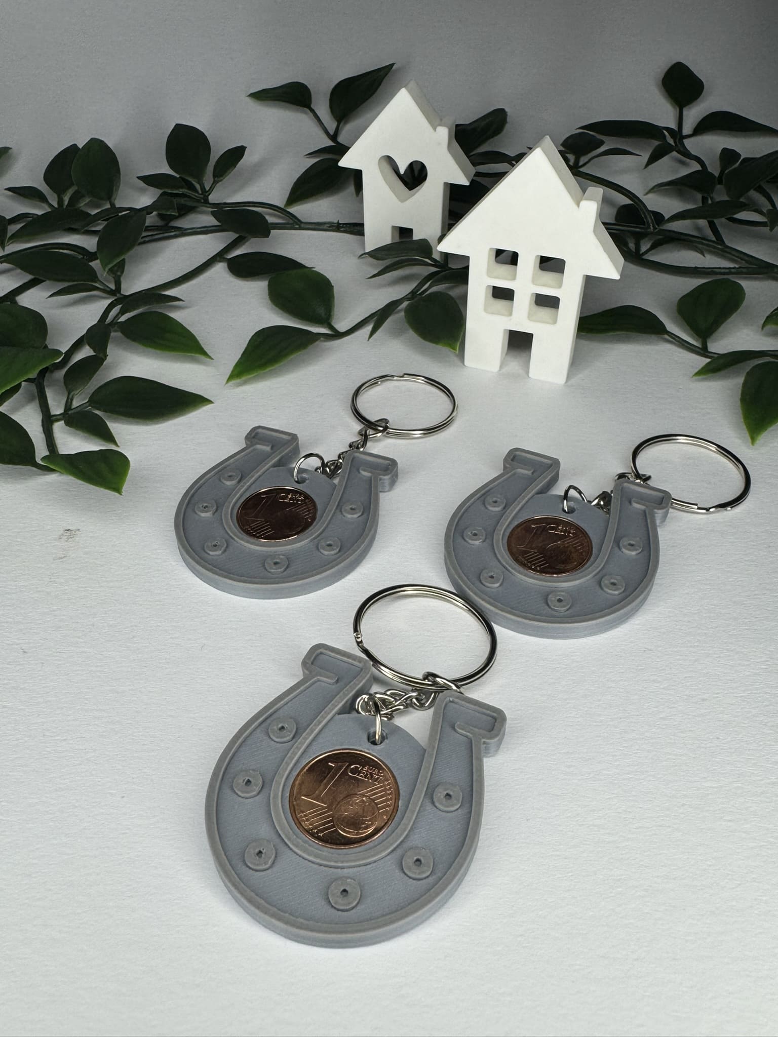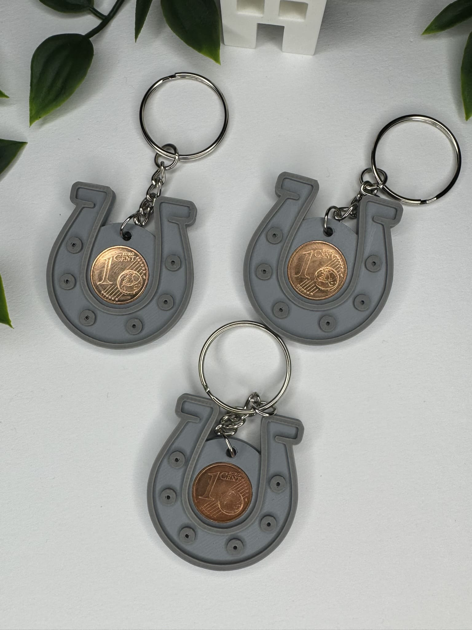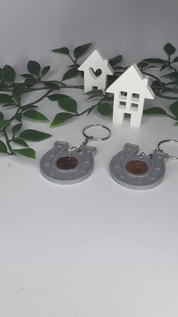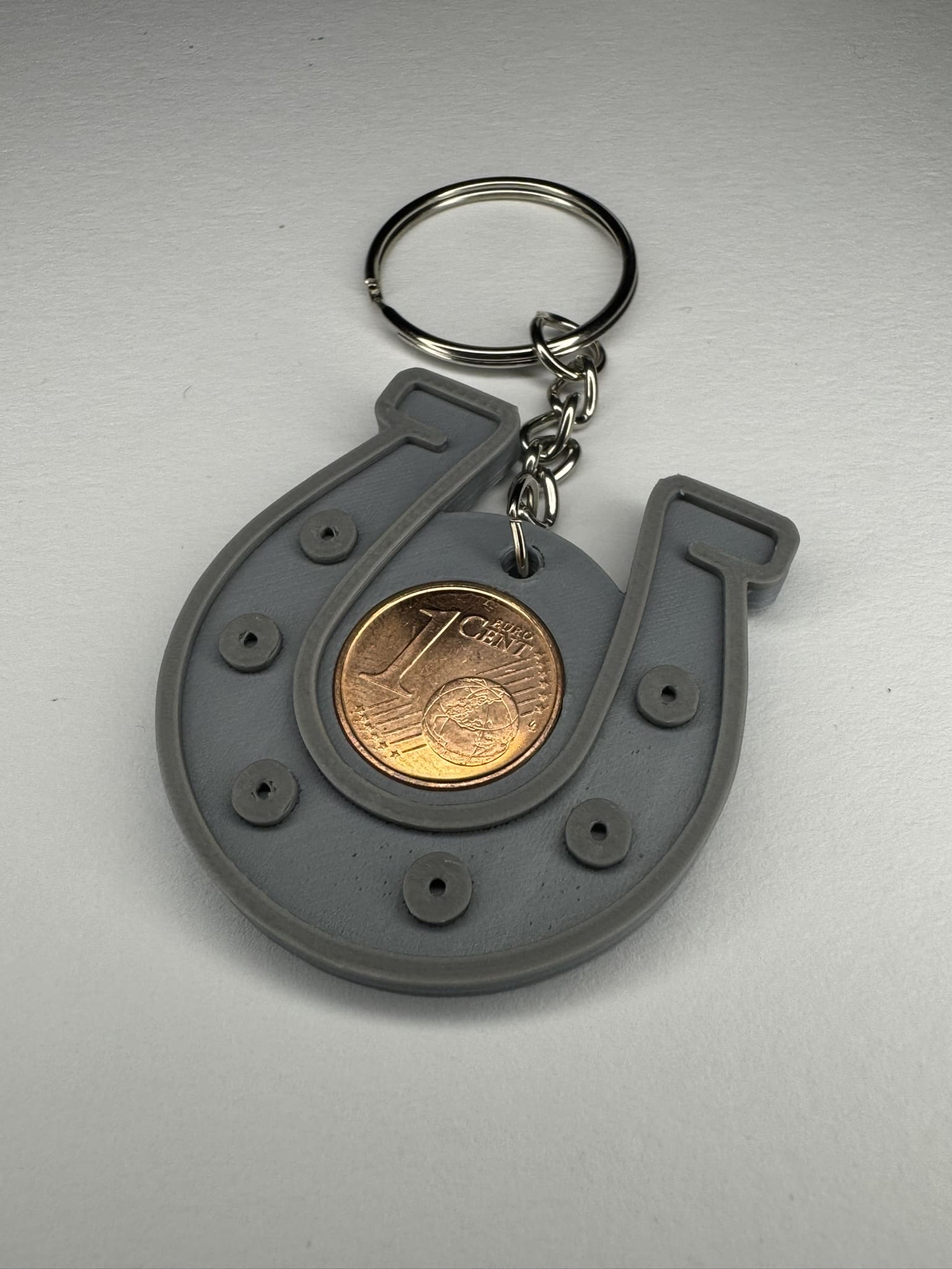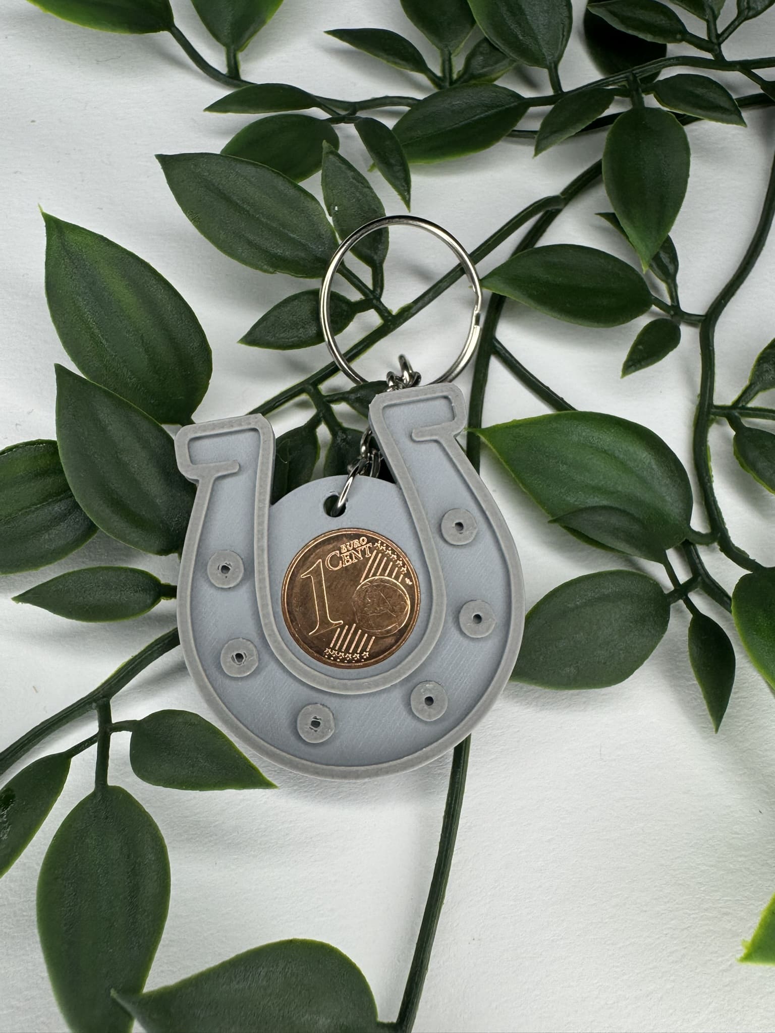 Tradition trifft auf praktisches Design: Unser Hufeisen-Schlüsselanhänger bringt dir nicht nur stilvolles Glück, sondern auch eine symbolträchtige Besonderheit – eine echte 1-Cent-Münze, eingelassen in das detailreich 3D-gedruckte Hufeisen.