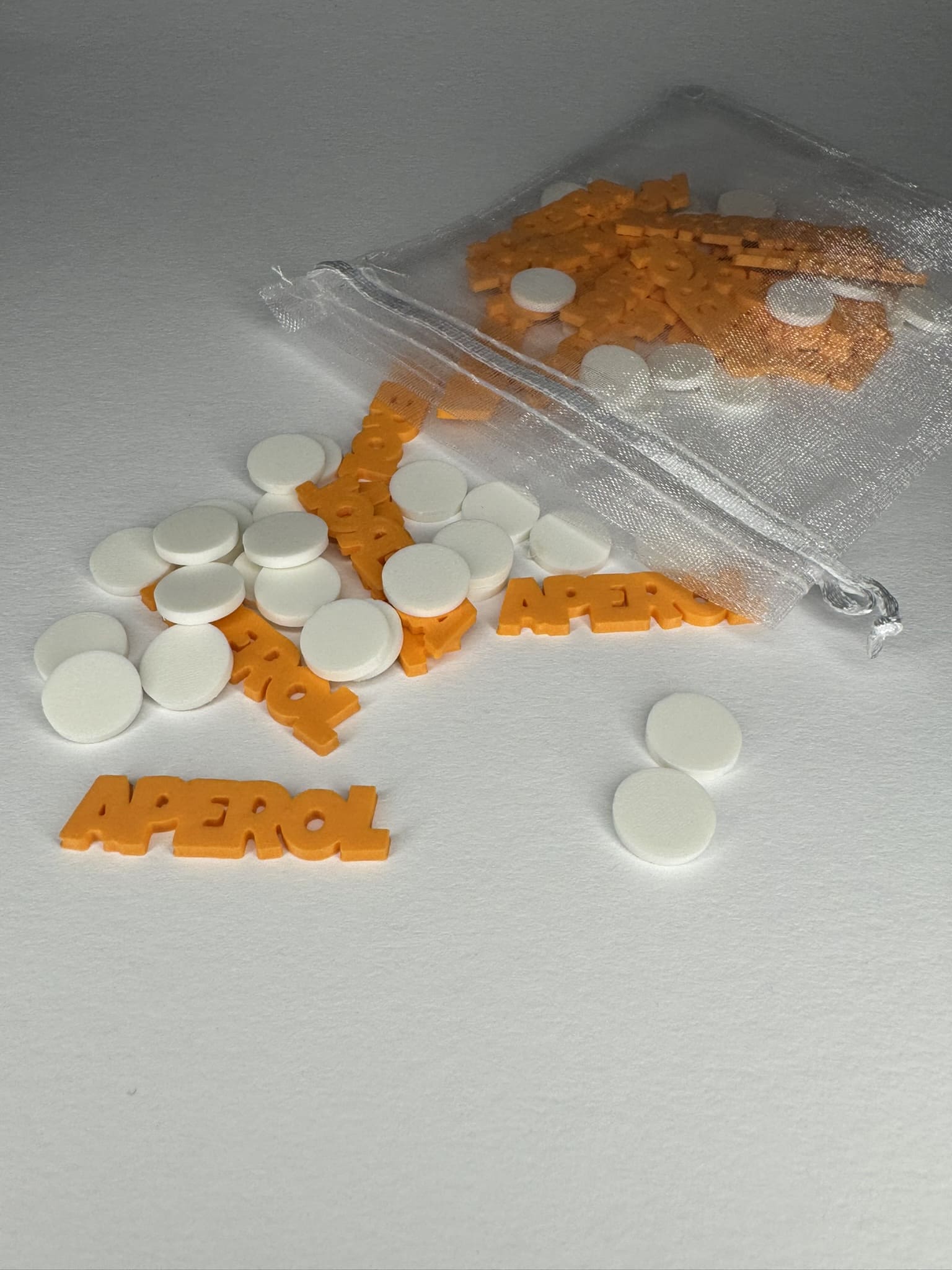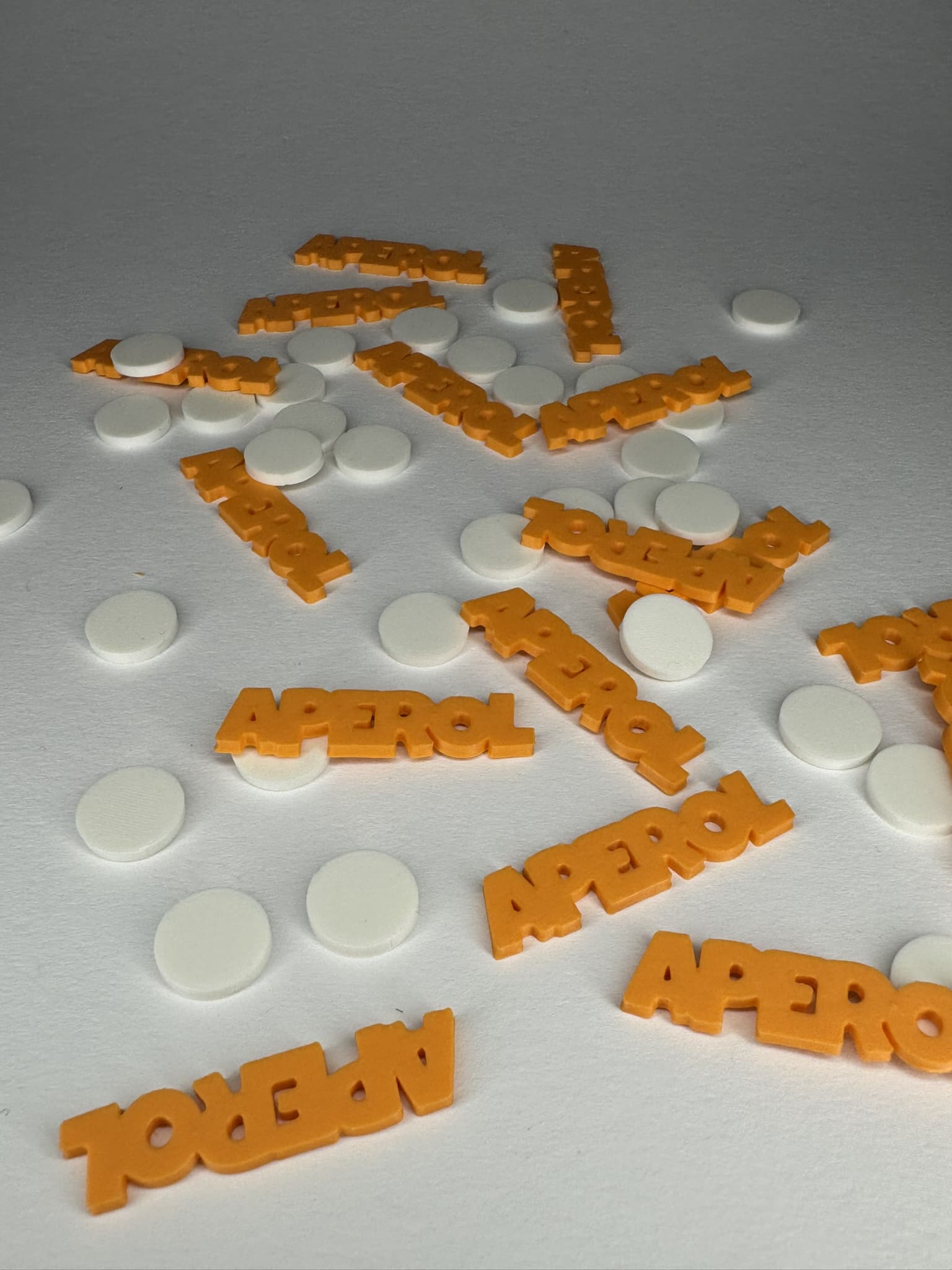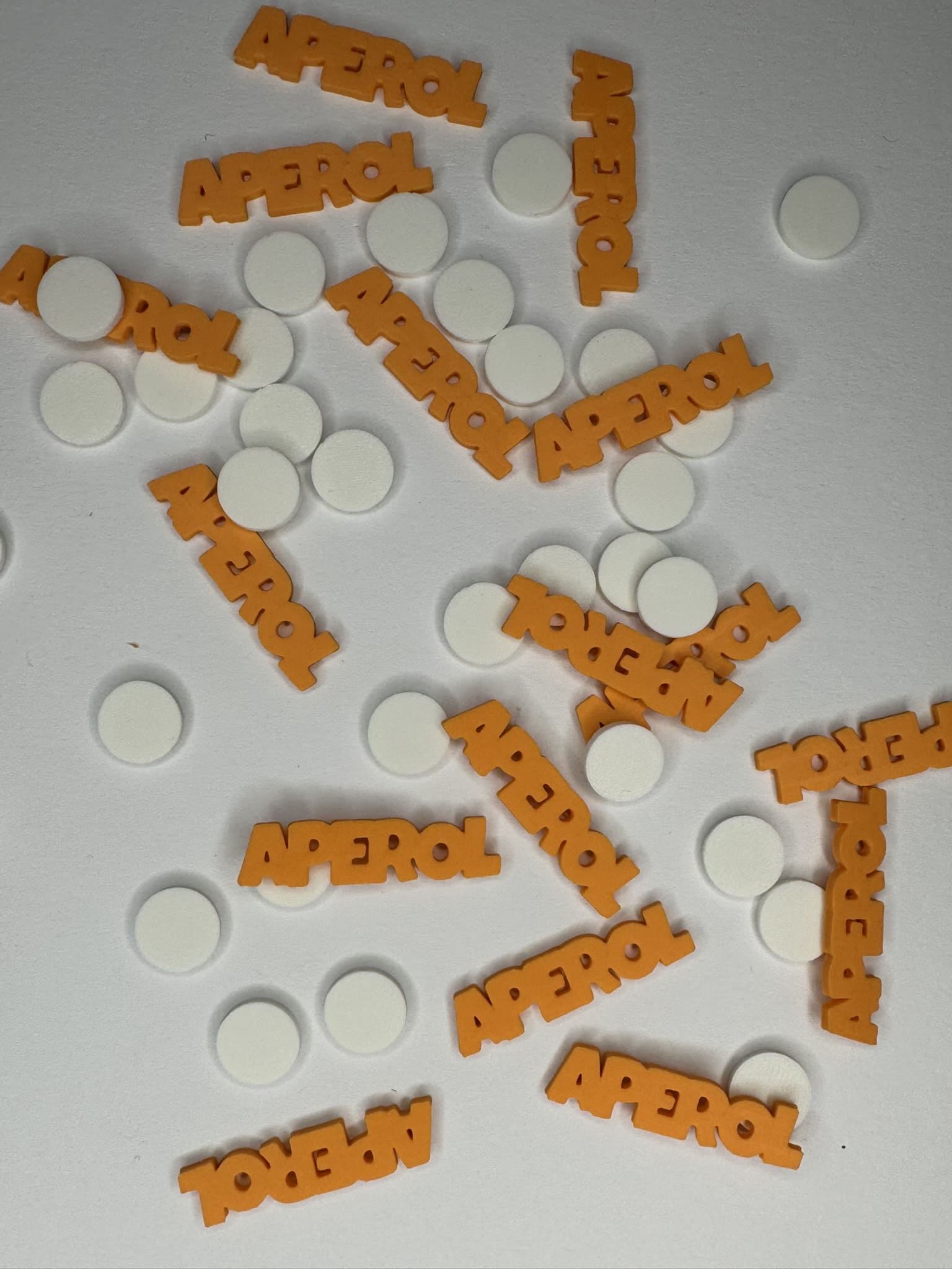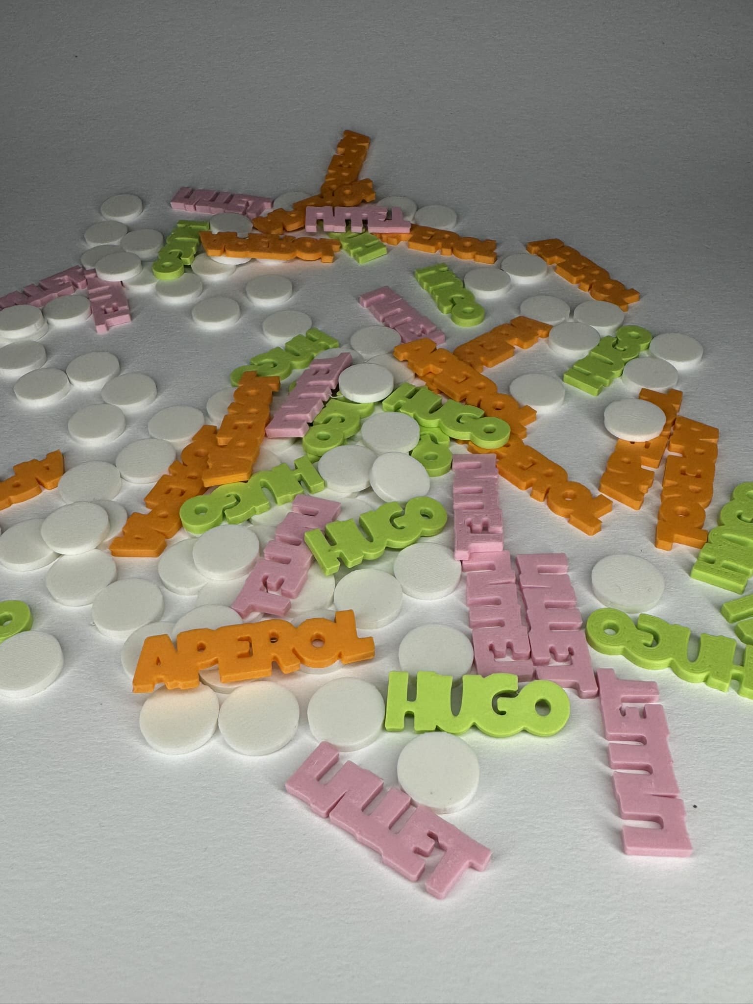Wähle zwischen einer bunten Mischung mit klassischen weißen Konfettikreisen und allen drei Schriftzügen - "Aperol" (orange), "Hugo" (hellgrün) und "Lillet" (rosa) - oder entscheide Dich für Deinen Lieblingsdrink als Einzelvariante, jeweils kombiniert mit stilvollen Kreisen.