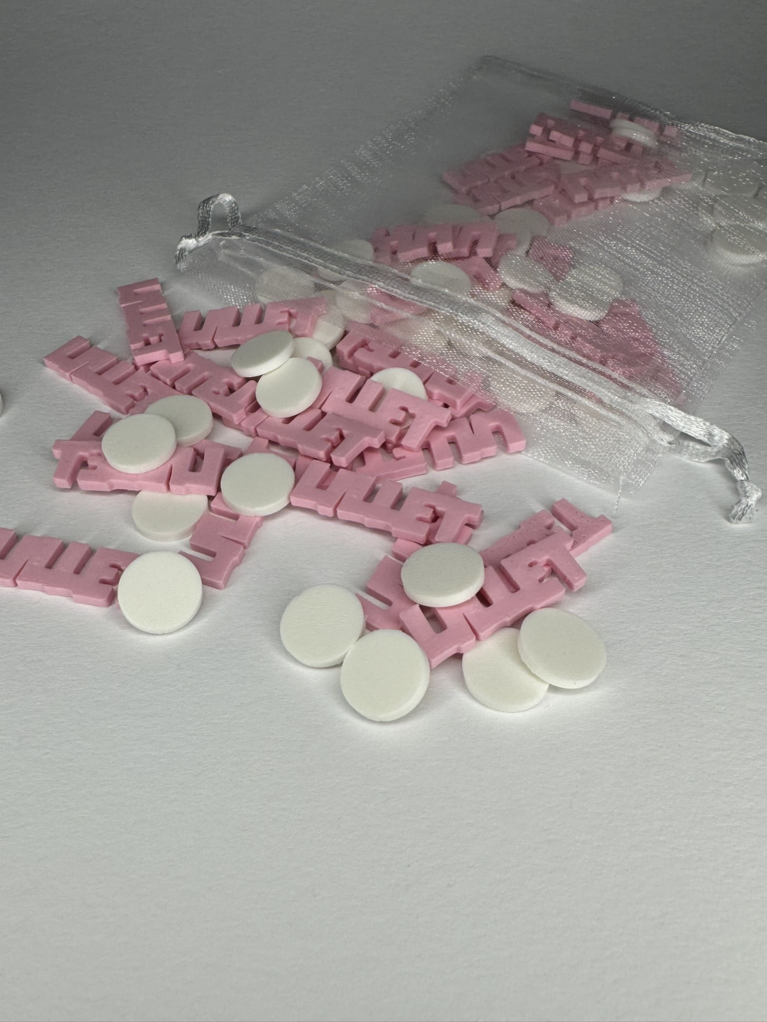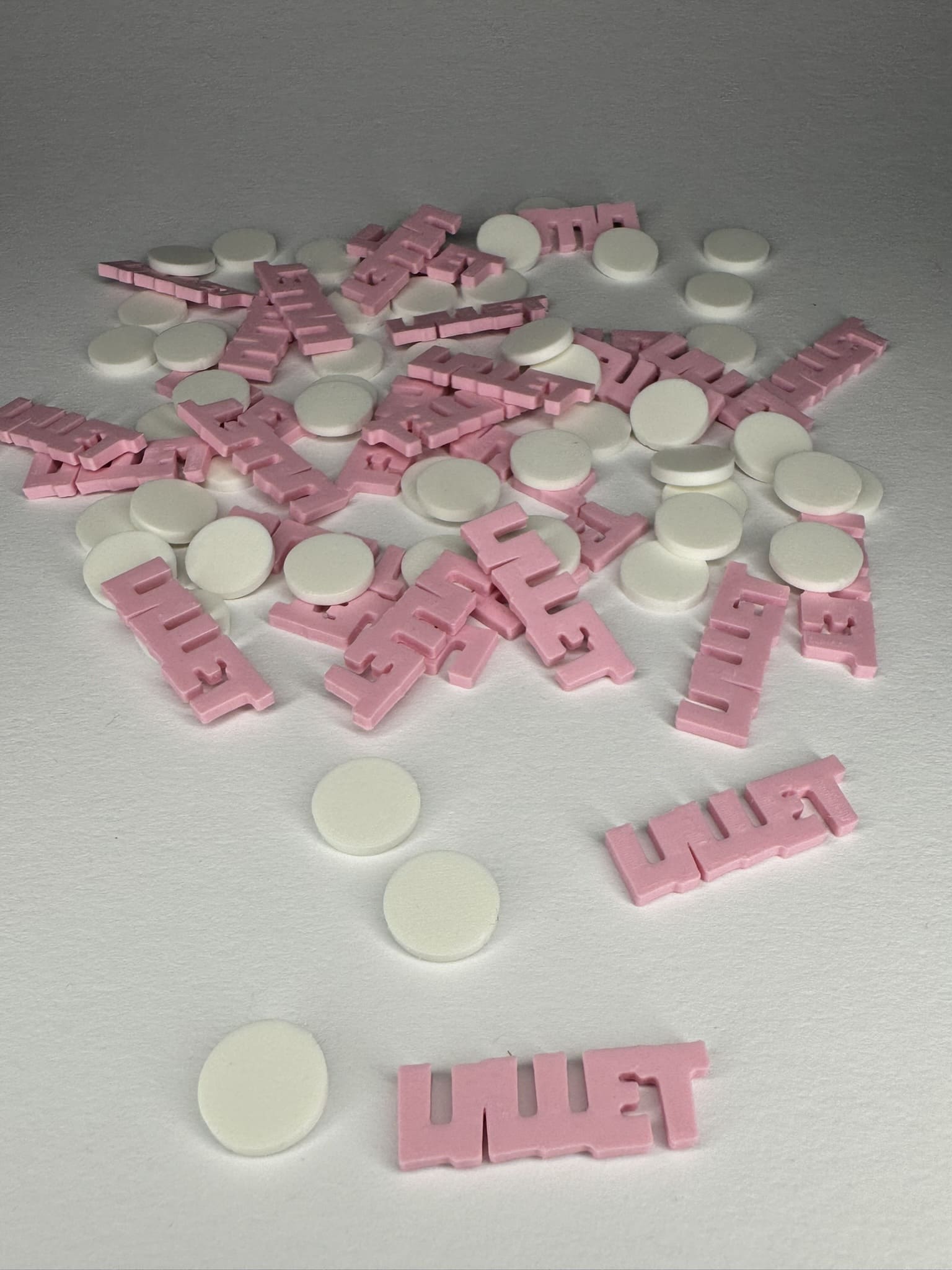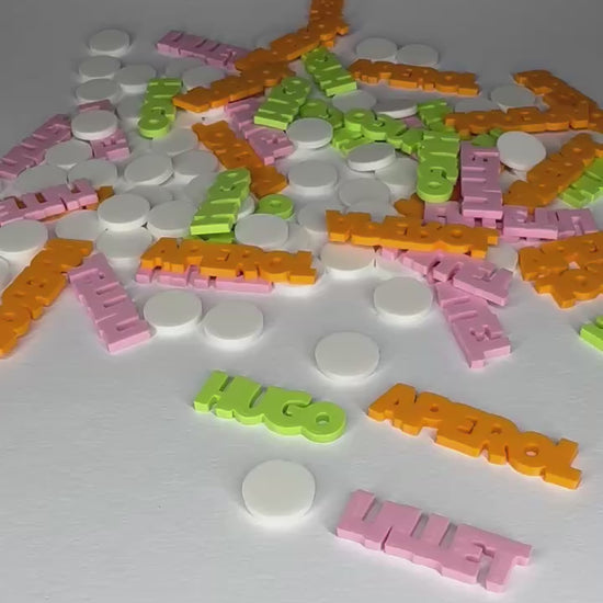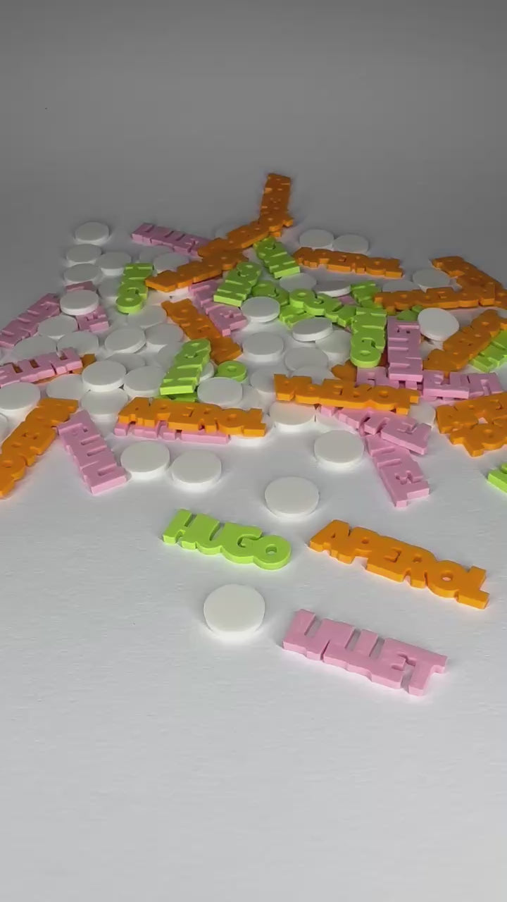 Größe: ca. 2,5-4 x 1 x 0,2 cm (Schriftzüge) & 1 x 1 x 0,2 cm (Kreise)
