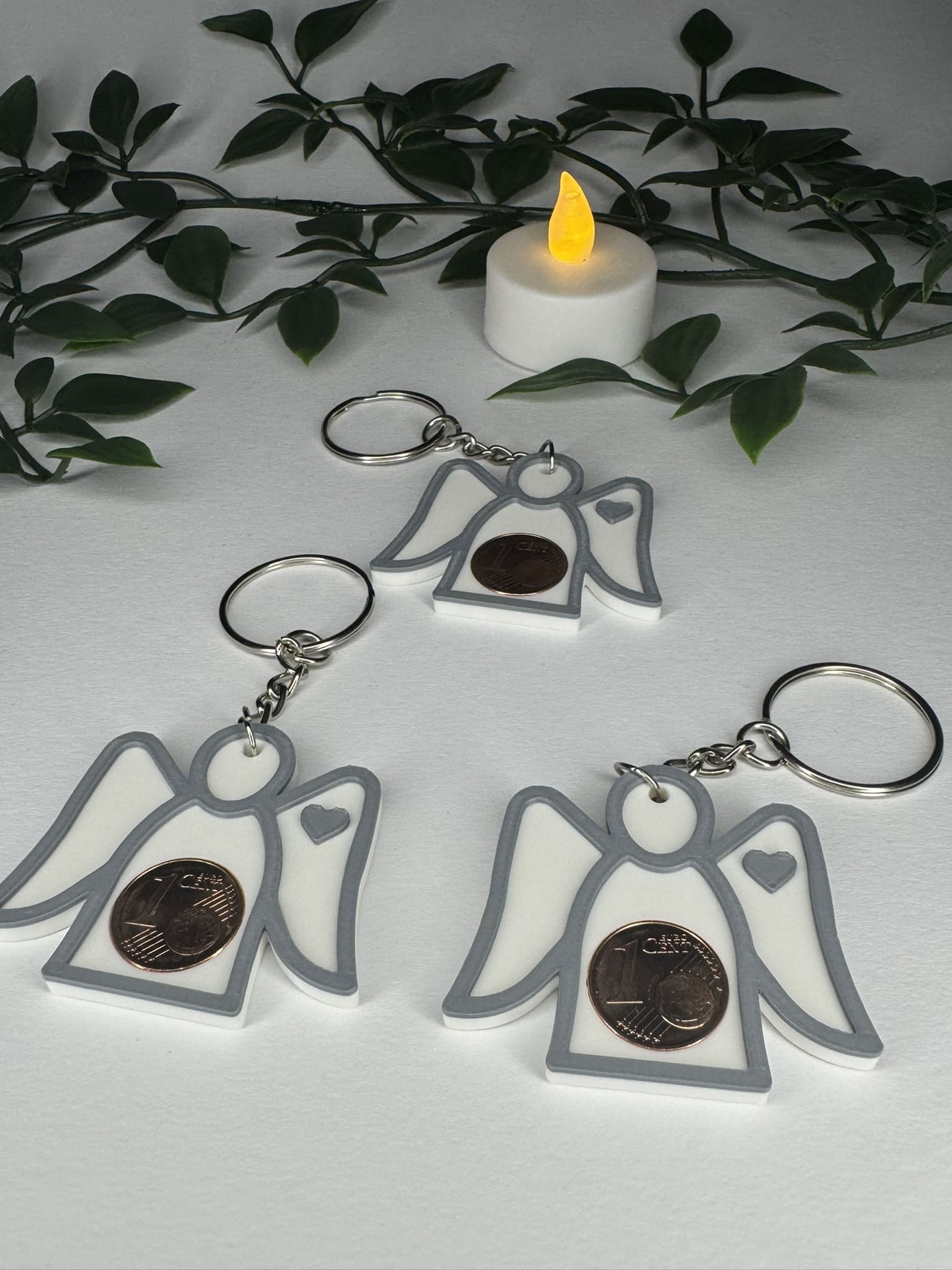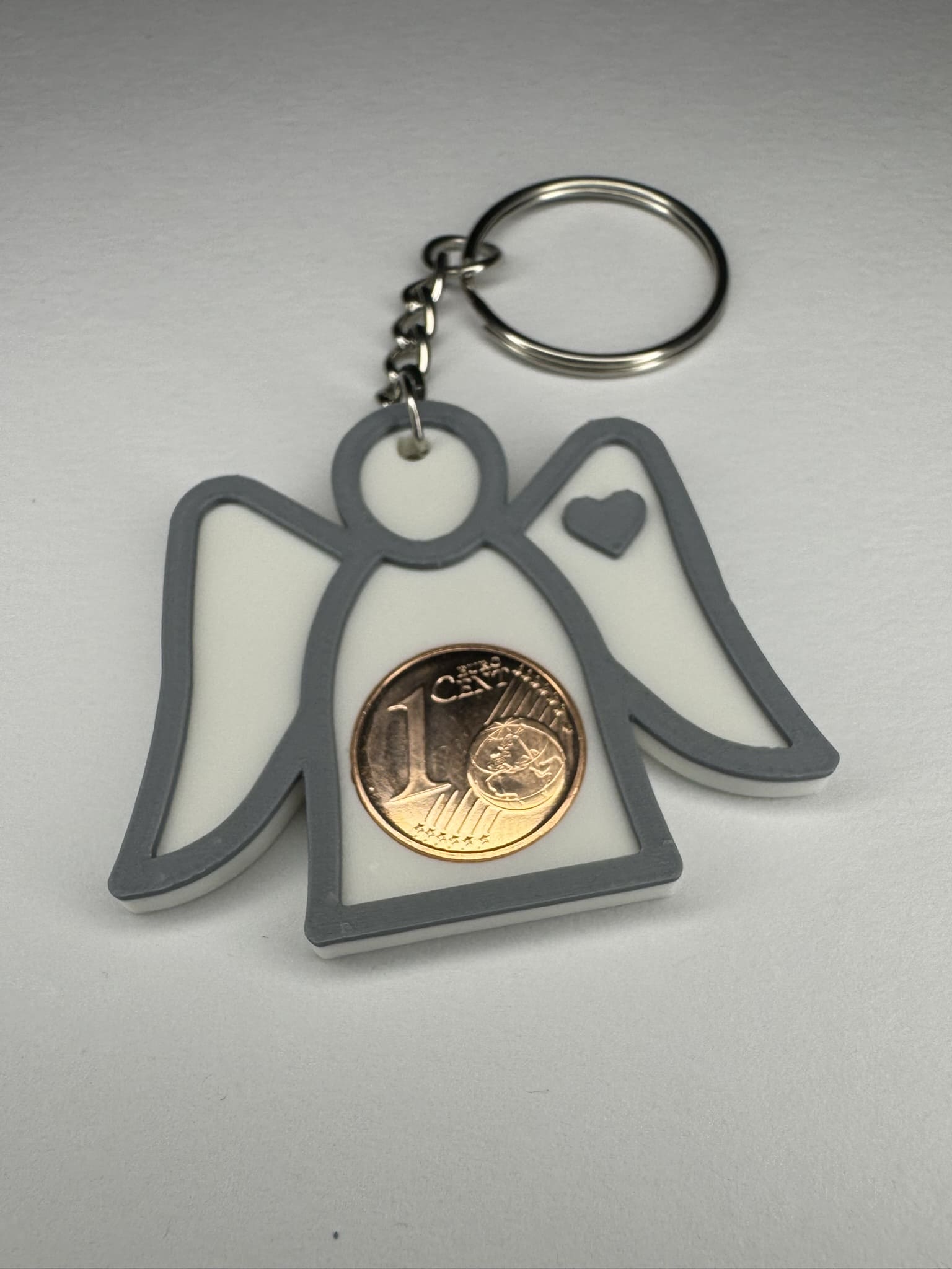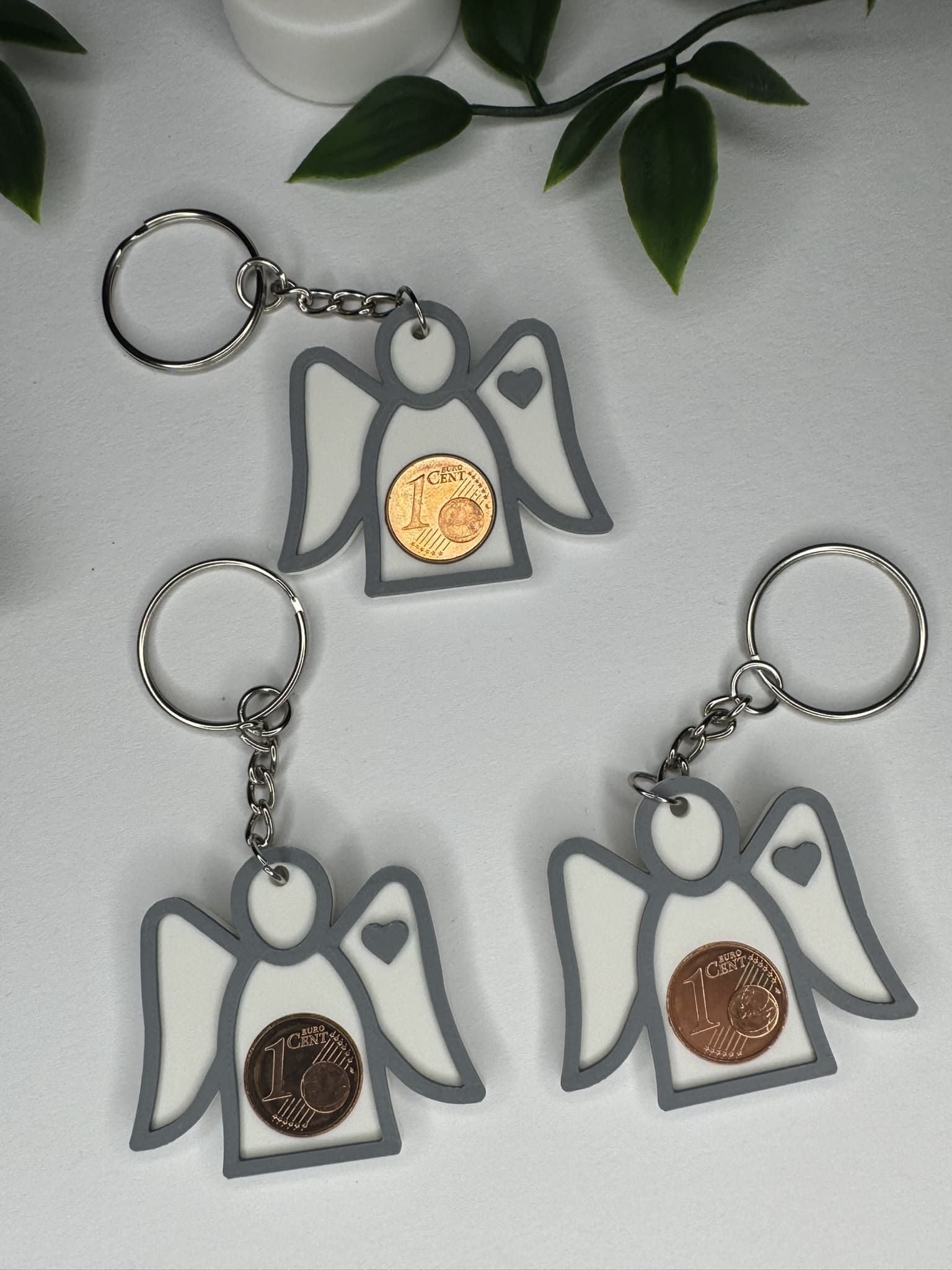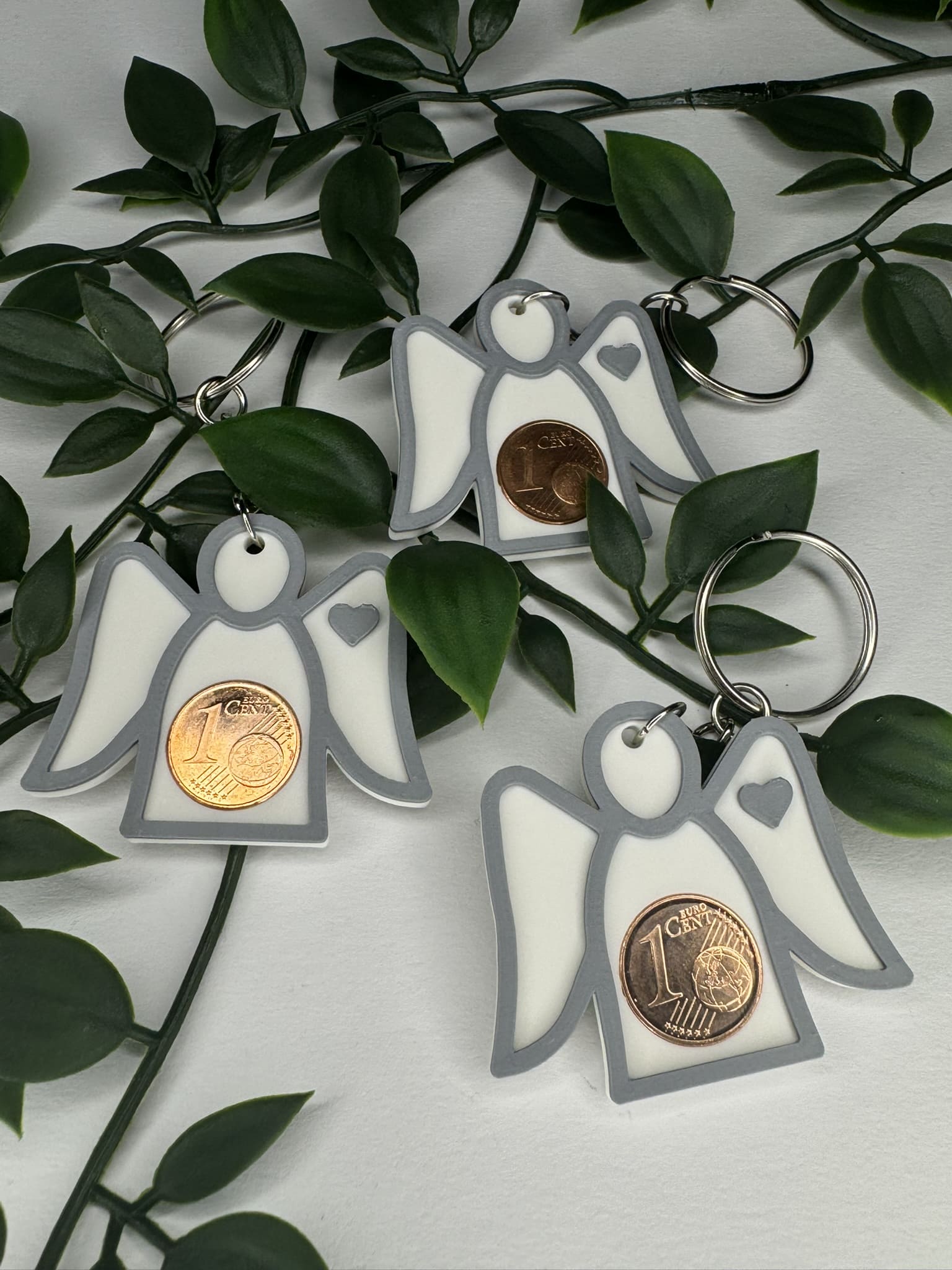Ein kleiner Begleiter mit großer Bedeutung: Unser Schutzengel-Schlüsselanhänger vereint symbolische Geborgenheit mit einem traditionellen Glücksbringer – einer echten 1-Cent-Münze, eingelassen in das 3D-gedruckte Engel-Design.